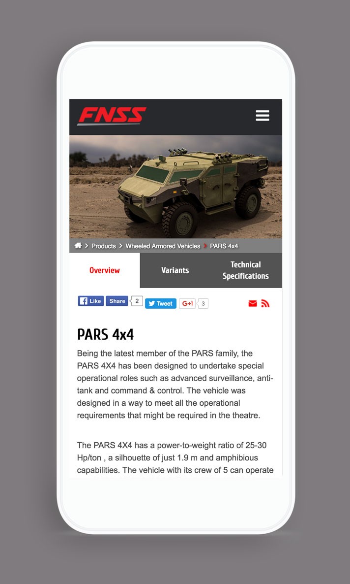 FNSS ile uzun soluklu iş ortaklığımız süresince mobil web sitesinden interaktif i-Pad reklamına, logo tasarımından kurum içi iletişim görsellerine ve intranet sistemine kadar geniş bir yelpazede tasarım ve yazılım çözümleri ürettik. Türkiye'nin kara savunma sistemlerinde önde gelen şirketlerinden ve aynı zamanda ihracat rekortmeni olan FNSS'nin hem geleneksel hem de dijital mecra için tasarım ve yazılım ihtiyaçlarında çözüm ortağı olmayı sürdürüyoruz.